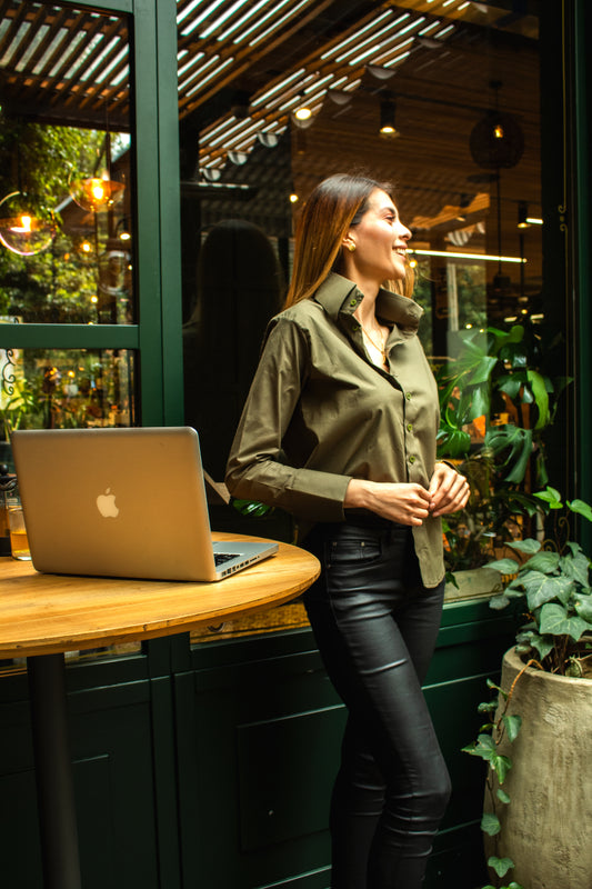 Más vendida 🔥 Favorita indiscutible: Camisa blanca cuello alto.