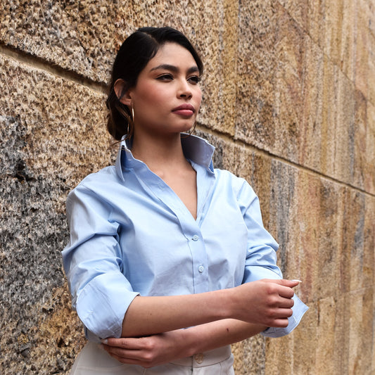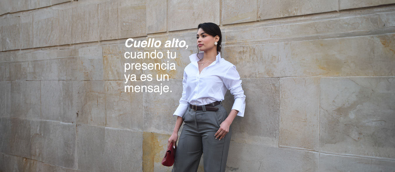 Más vendida 🔥 Favorita indiscutible: Camisa blanca cuello alto.